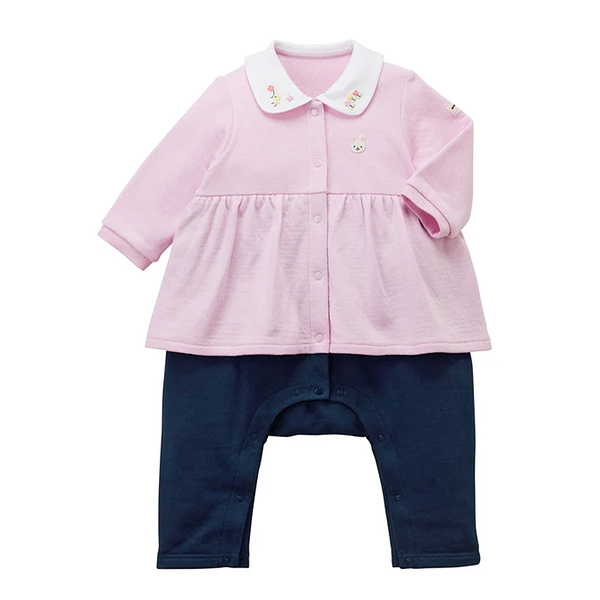 イメージ拡大 イメージ拡大 ミキハウス mikihouse セパレート風 うさぎカバーオール 日本製 長袖ロンパース 綿100% 女の子 衿 花 刺繍 パイル