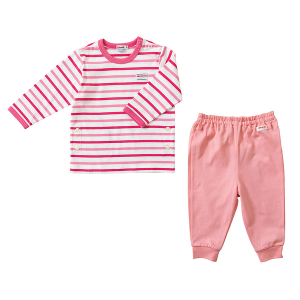 イメージ拡大 イメージ拡大 ミキハウス mikihouse 長袖パジャマ ボーダー (10-7307-824) ピンク 80cm パジャマ ルームウェア 抗ウイルス加工素材