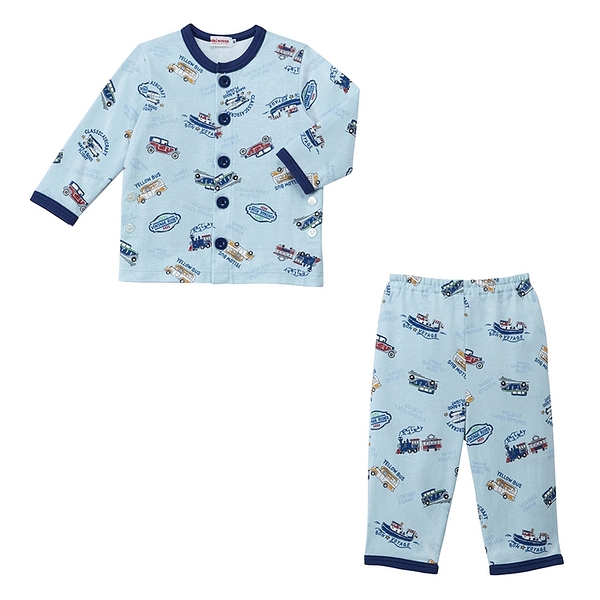 イメージ拡大 イメージ拡大 ミキハウス 乗り物 天竺素材の前開き 長袖パジャマ (11-7303-454) 80cm パジャマ ルームウェア 前開き ボタン
