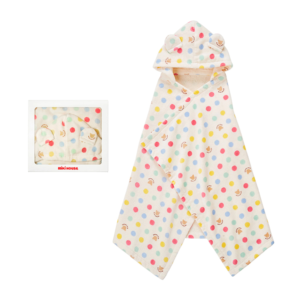 イメージ拡大 イメージ拡大 ミキハウス バスポンチョ BOX付き マルチカラー 湯上りタオル バスタオル お風呂セット 日本製 出産祝い 綿100%
