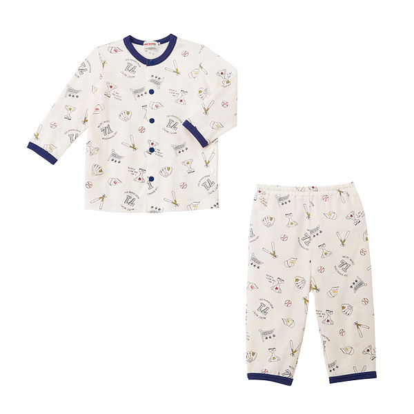 イメージ拡大 イメージ拡大 ミキハウス ベースボール柄 タック天竺素材の前開き 長袖パジャマ (12-7304-454) 90cm パジャマ ルームウェア 前開き ホックボタン