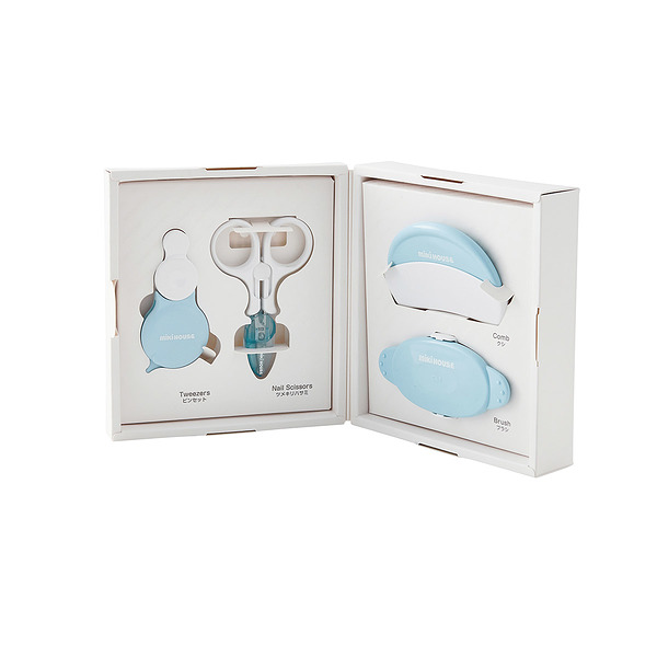 イメージ拡大 イメージ拡大 ミキハウス mikihouse グルーミングセット (46-1285-826) 4点セット ベビーケア 爪切り ピンセット ブラシ くし
