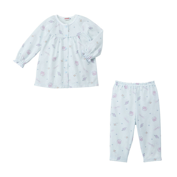 イメージ拡大 イメージ拡大 ミキハウス 海の貝がら柄 タック天竺素材の前開き 長袖パジャマ (12-7306-450) 90cm パジャマ ルームウェア 前開き ホックボタン