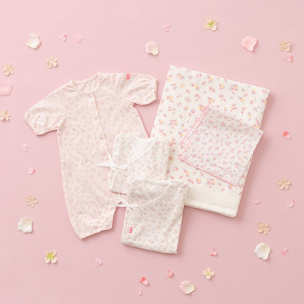 イメージ拡大 イメージ拡大 ミキハウス ホットビスケッツ mikihouse HOT BISCUITS スターターセット 春夏用 ピンク(小花) 出産準備 5点 セット
