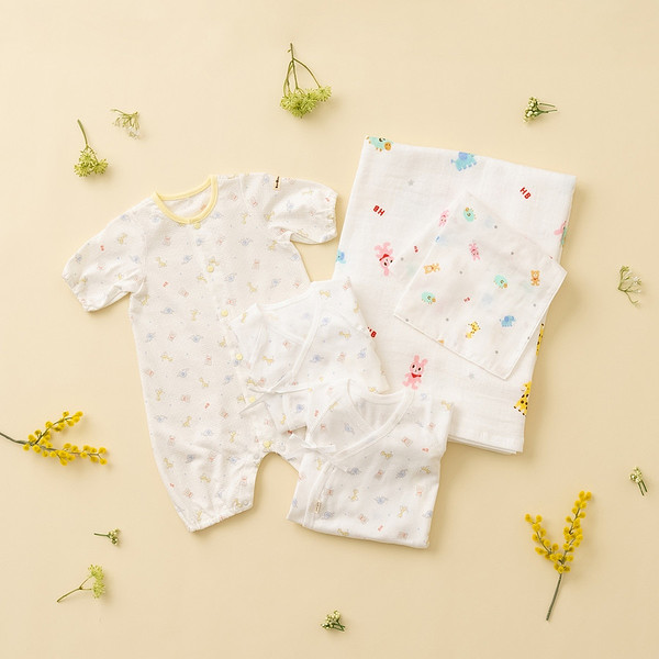 イメージ拡大 イメージ拡大 ミキハウス ホットビスケッツ mikihouse HOT BISCUITS スターターセット 春夏用 アイボリー(アニマル) 出産準備 5点 セット