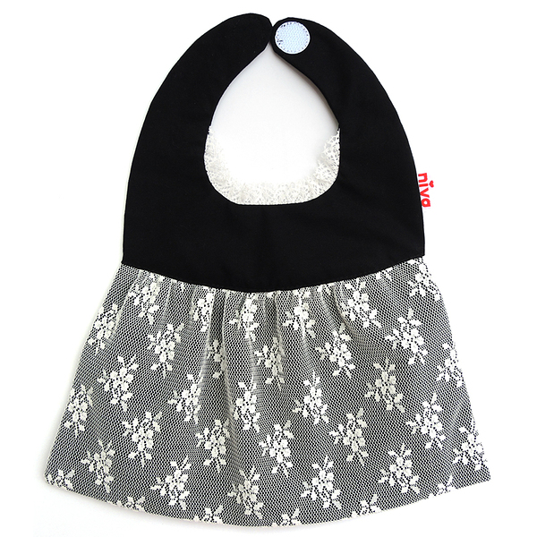 イメージ拡大 イメージ拡大 niva ニヴァ 女の子 スタイ レースドレスビブ lace dress bib ホワイト×ブラック お食事エプロン よだれかけ かわいい