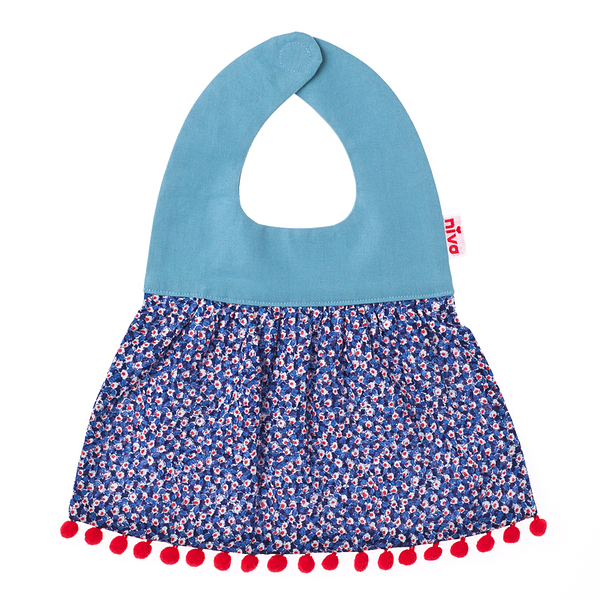 イメージ拡大 イメージ拡大 niva ニヴァ 女の子 スタイ バイカラーポンポン bicolor with pompoms レッド×ブルー お食事エプロン よだれかけ かわいい