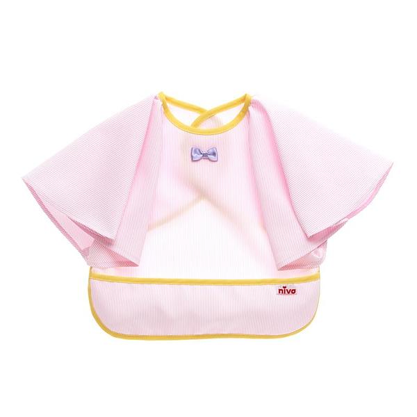 イメージ拡大 イメージ拡大 niva ニヴァ 女の子 スタイ レストラン ビブ restaurant bib ピンクストライプ 袖付き 撥水 UV おめかし お食事エプロン よだれかけ かわいい