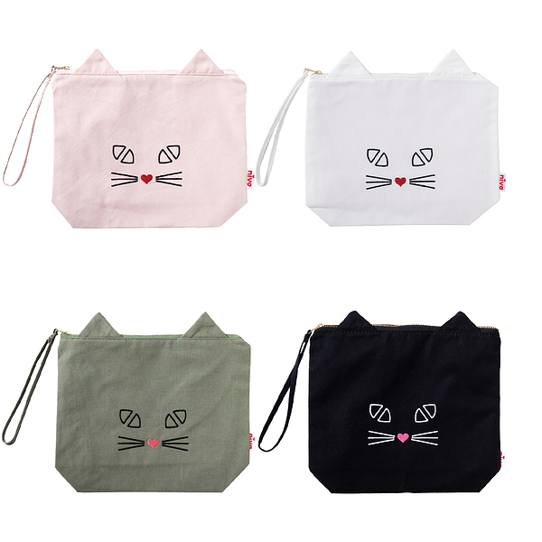 イメージ拡大 イメージ拡大 niva ニヴァ キャットポーチ cat pouch ピンク/ホワイト/カーキ/ブラック おむつポーチ コスメポーチ 小物入れ 撥水