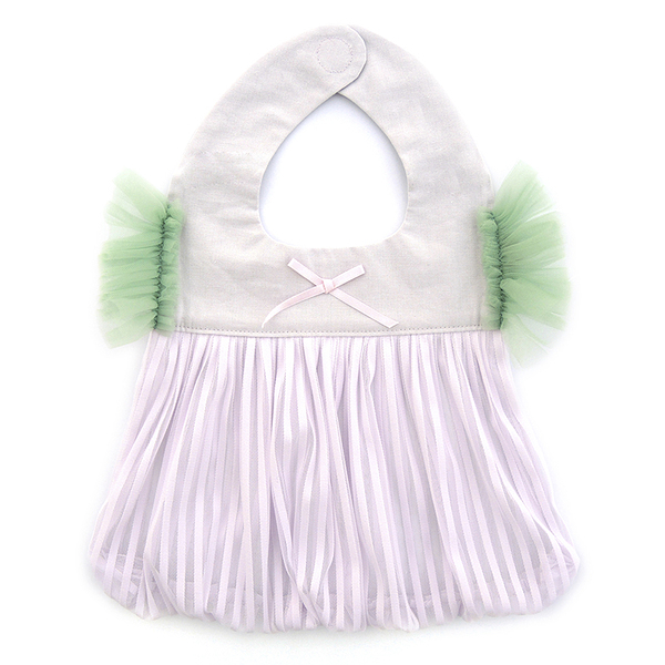 イメージ拡大 イメージ拡大 niva ニヴァ 女の子 スタイ チュールスリーブビブ tulle sleeve bib パープル×グリーン お食事エプロン よだれかけ かわいい