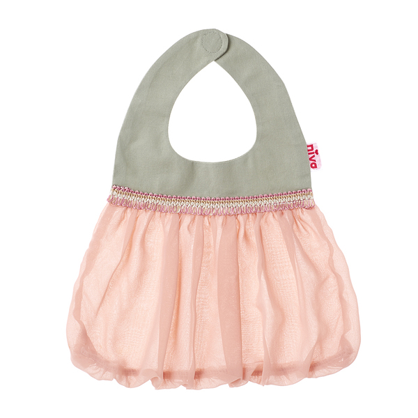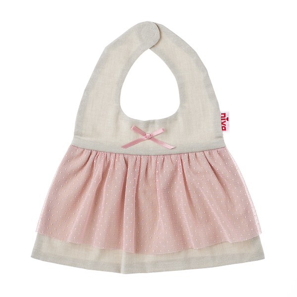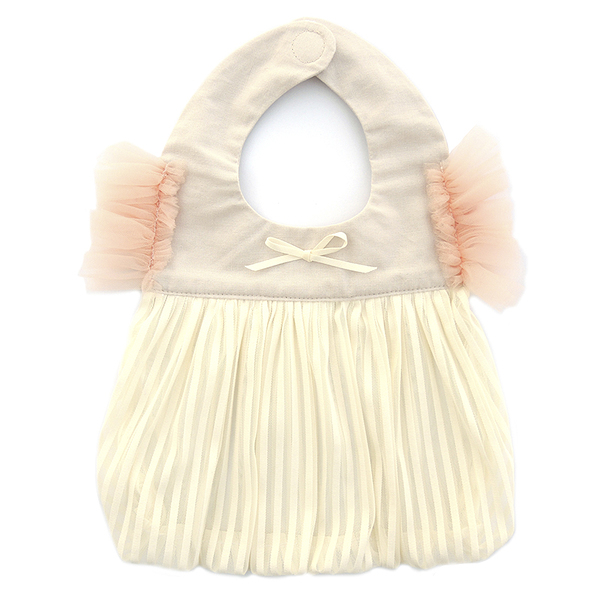 イメージ拡大 イメージ拡大 niva ニヴァ 女の子 スタイ チュールスリーブビブ tulle sleeve bib アイボリー×ピンク お食事エプロン よだれかけ かわいい