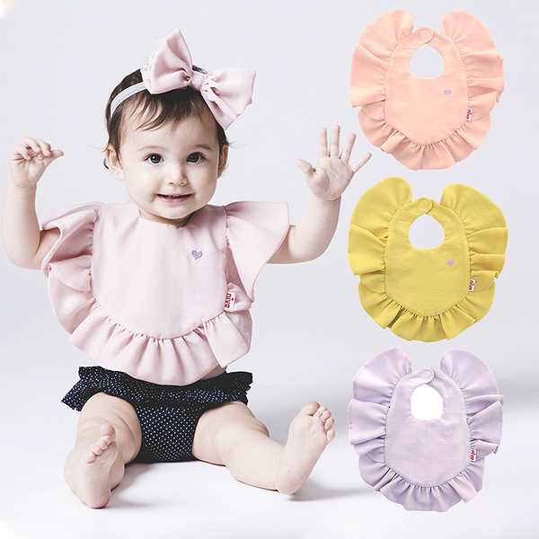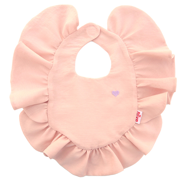 イメージ拡大 イメージ拡大 niva ニヴァ 女の子 スタイ ハート刺繍 フリルスタイ heart embroidered frill bib ピンク お食事エプロン よだれかけ かわいい