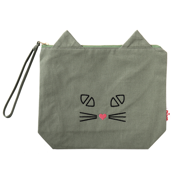 イメージ拡大 イメージ拡大 niva ニヴァ キャットポーチ cat pouch カーキ おむつポーチ コスメポーチ 小物入れ 撥水