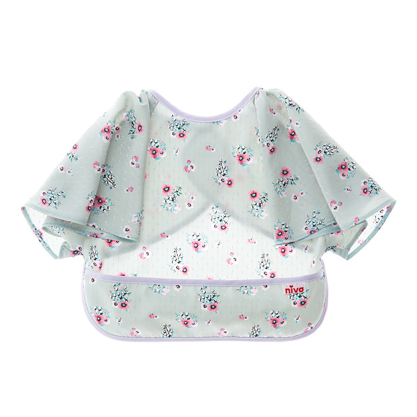 イメージ拡大 イメージ拡大 niva ニヴァ 女の子 スタイ レストランビブ フラワー restaurant bib flower グリーン 袖付き 撥水 お食事エプロン よだれかけ かわいい