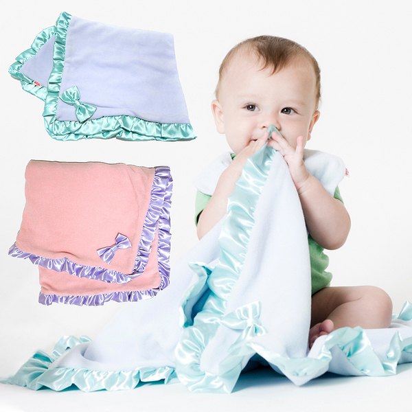 イメージ拡大 イメージ拡大 niva ニヴァ サテンフリル付き フリースブランケット ピンク/ブルー ベビー 毛布 ひざ掛け 出産祝い