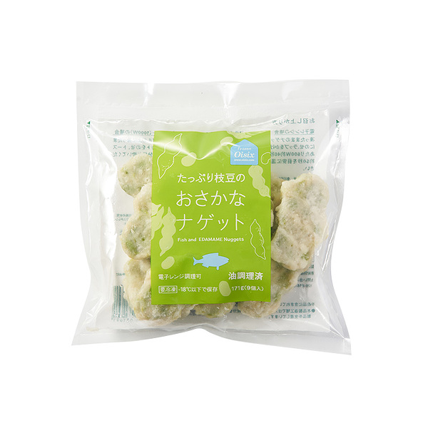 イメージ拡大 イメージ拡大 オイシックス 子どもパクパク!たっぷり枝豆のおさかなナゲット 19g×9個 おかず お弁当 冷凍 冷凍食品 冷凍総菜 時短 簡単 ヘルシー 健康食 タンパク質 離乳食 ベビーフード 幼児食 おやつ おつまみ 1口サイズ oisix