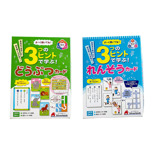 イメージ拡大 イメージ拡大 よーく聞いてね! 3ヒントで学ぶ! どうぶつカード! スリーヒント 連想 聞く力 集中力 思考力 推理力 3歳以上