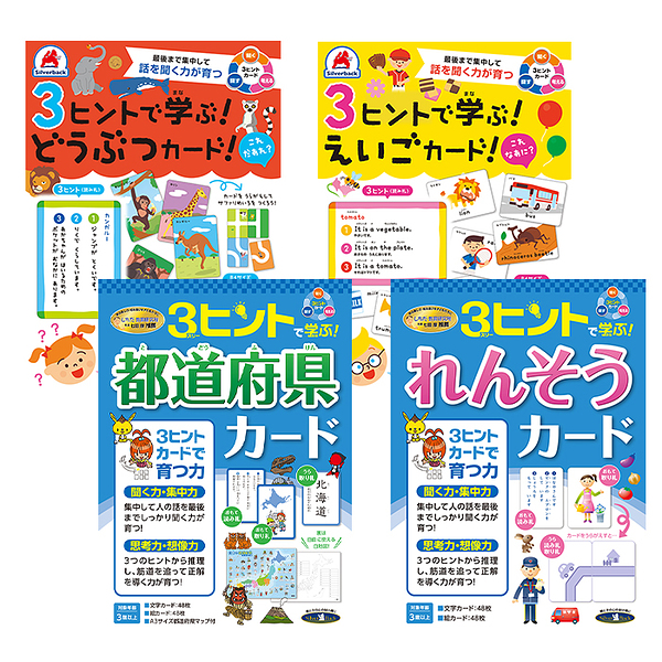 イメージ拡大 イメージ拡大 3ヒントで学ぶ! えいごカード! スリーヒント 連想 聞く力 集中力 思考力 推理力 3歳以上