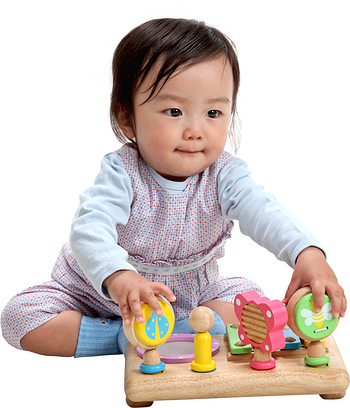 小さなお手てにも伝わるやさしい木のぬくもり。思わず手に取りたくなるポップな色合いで、ベビーのプレイタイムをかわいく演出します。