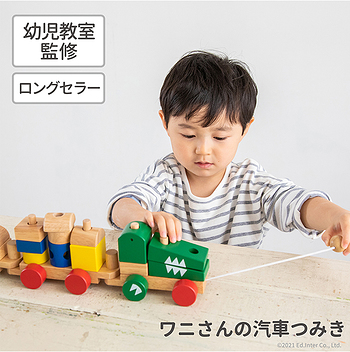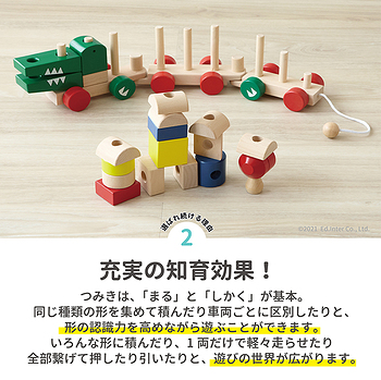 エドインター ワニさんの汽車つみき 積み木 木のおもちゃ ブロック パズル 日本製 知育玩具 動物