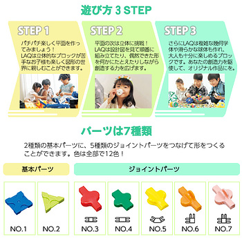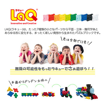 LaQ(ラキュー)は、たった7種類の小さな平面・立体・球体とあらゆる形に変化する、まったく新しい発想から生まれたパズルブロックです。