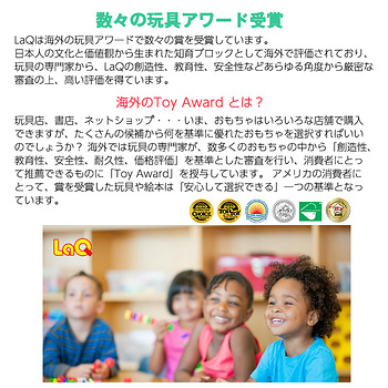 LaQは日本人の文化と価値観から生まれた知育ブロックとして海外で評価されています。