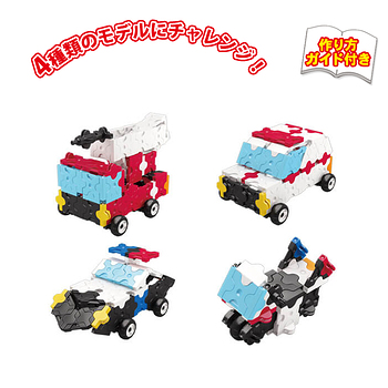 ファイヤートラックは、消防車、救急車、パトカー、白バイの全4モデルを組み替えて作れます。