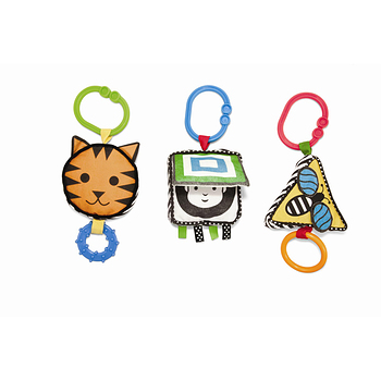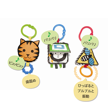 あそびの欲求につなげる様々な機能がついたハンギングトーイです。