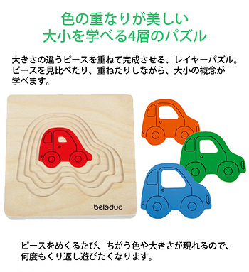 色の重なりが美しい、大小を学べる4層のパズルです。