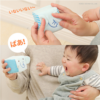 やわらかく肌触りのいい素材で仕上げました。はじめてのおもちゃにぴったりなやわらか布製のつみき。ひとつひとつのつみきから音が鳴るので、ラトルとして単体で遊んだり、いないいないばあやごっこあそびをお楽しみいただけるのはもちろんのこと、ひっぱる、つかむ、にぎる、ころがす、などの動作を通じて様々な感覚を養うこともでき、安全かつ楽しみながら、赤ちゃんの成長を促します。